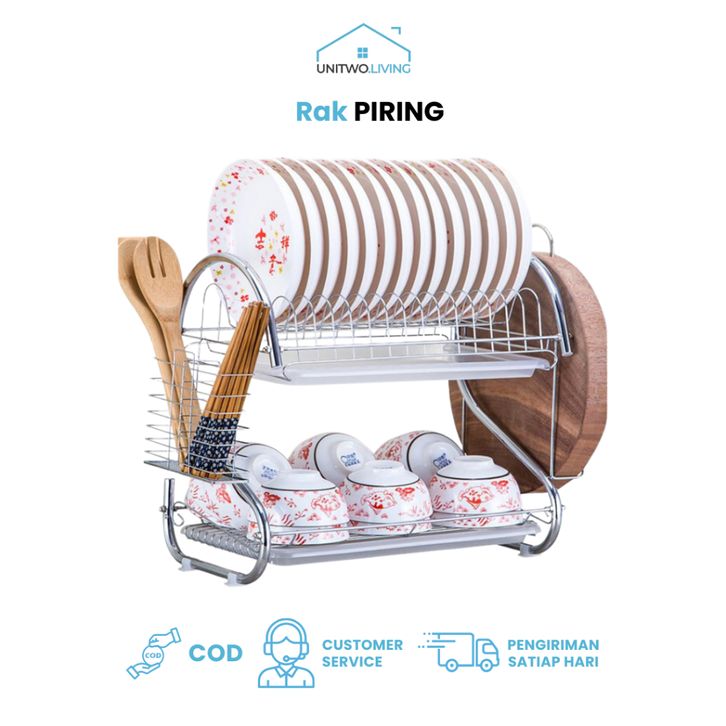 NEW Rak Piring Dapur Stainless Steel Rak Wastafel Rak Cuci Piring Rak Pengering Dapur Minimalis 2 Susun Serbaguna