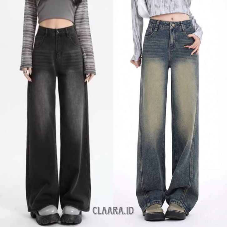 TERBARU Celana Hitam Retro Highwaist Celana Jeans Wanita Loose Kekinian anahb