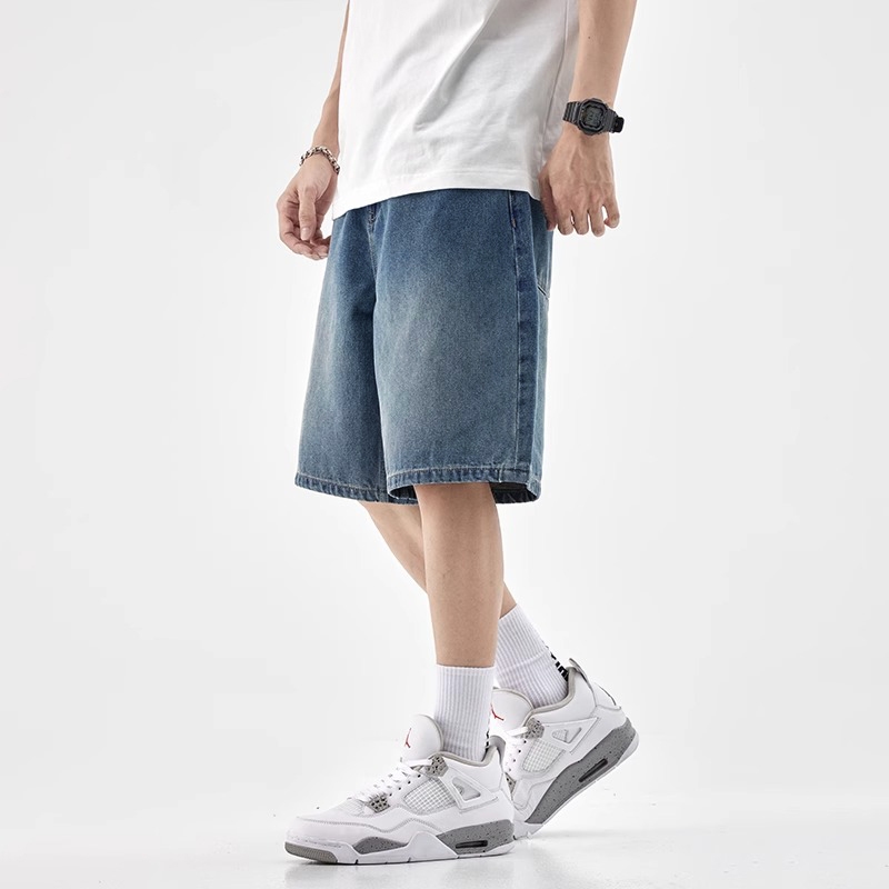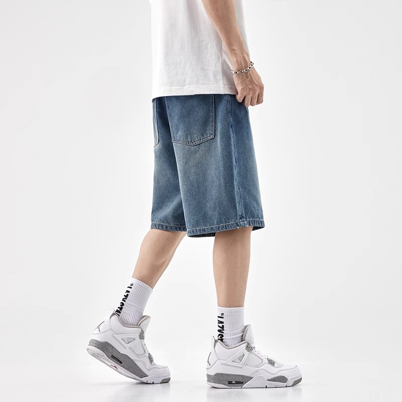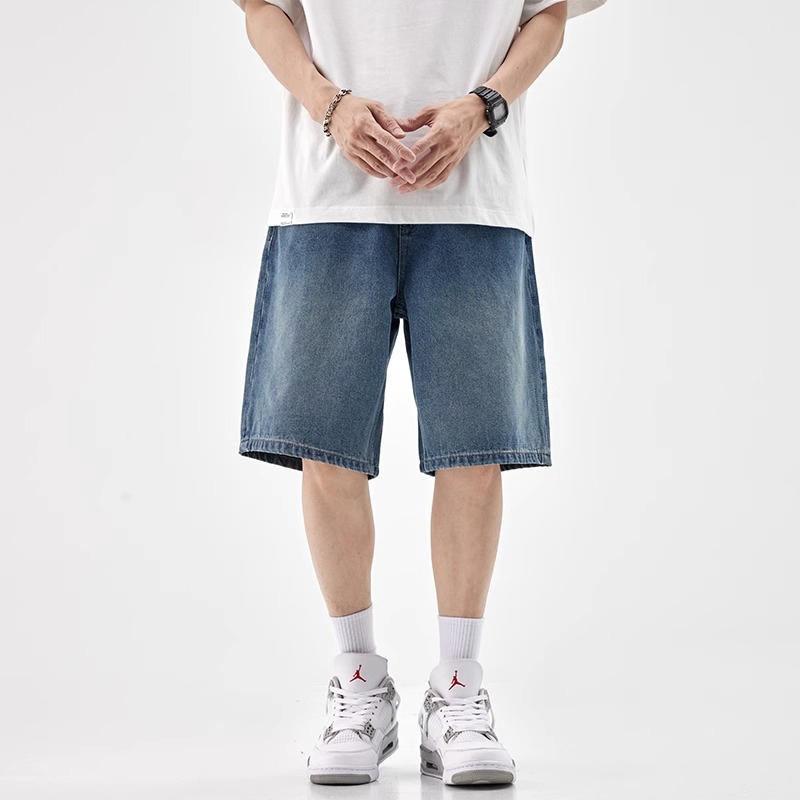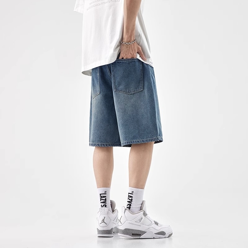 Tamp-X Oversize Jumbo Celana Pendek Pria Casual Distro Baggy Jeans Retro Biru