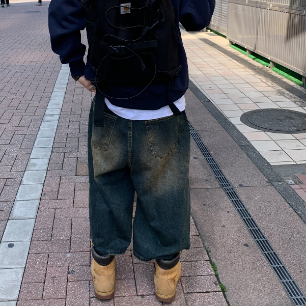 Tamp-X Oversize Vintage Celana Jeans Pria Gombrong Skena Kulot Jumbo Loose Jeans Korean Style Retro Biru Celana 7/8