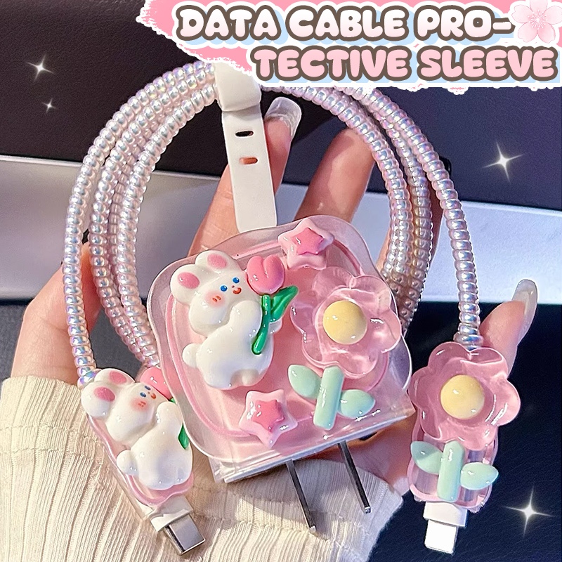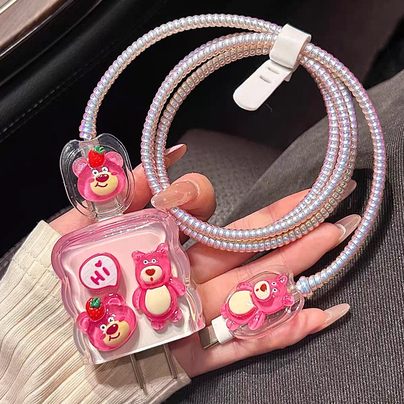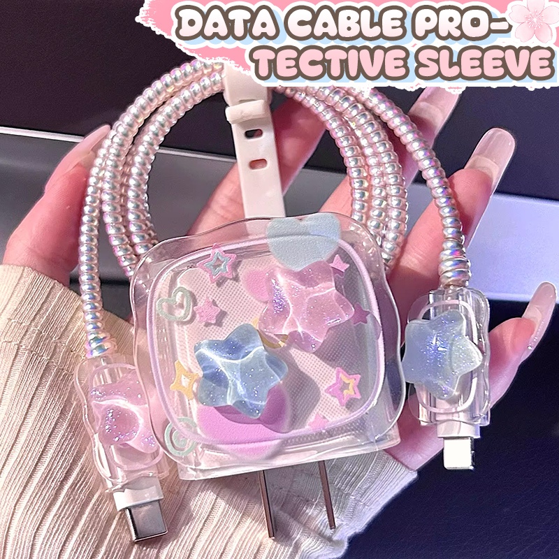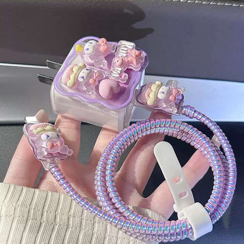 Pelindung Kabel Carger iPhone Full Set 5 in 1 Case Charger iPhone 18W 20W Kabel Charger Spiral Clear Set Pelindung