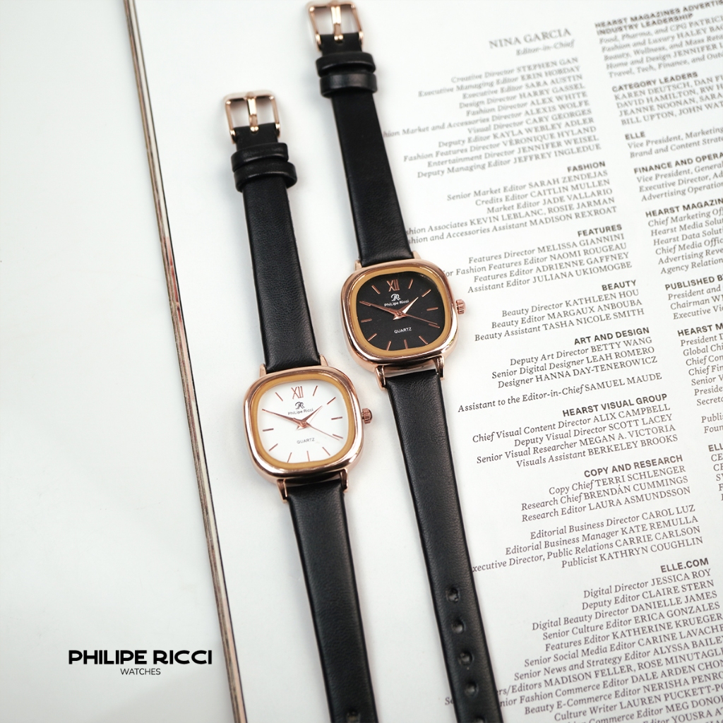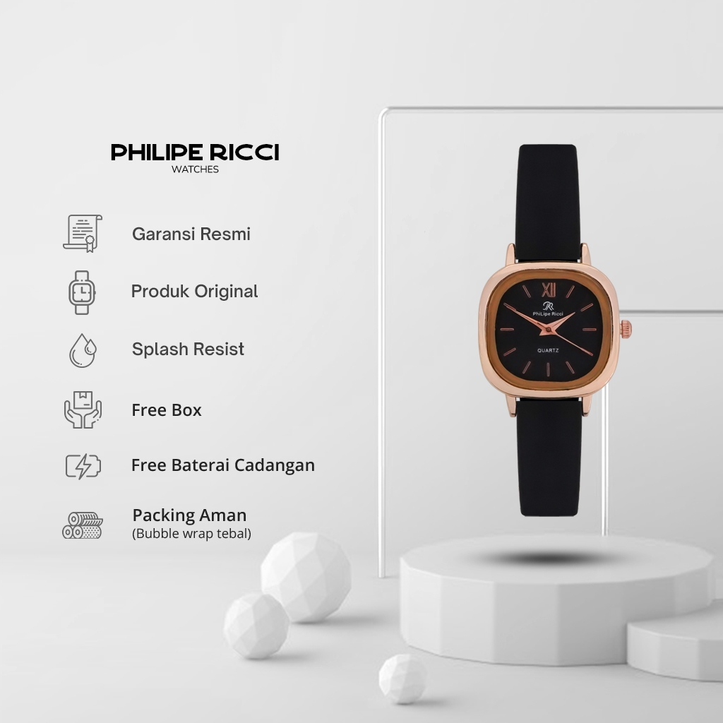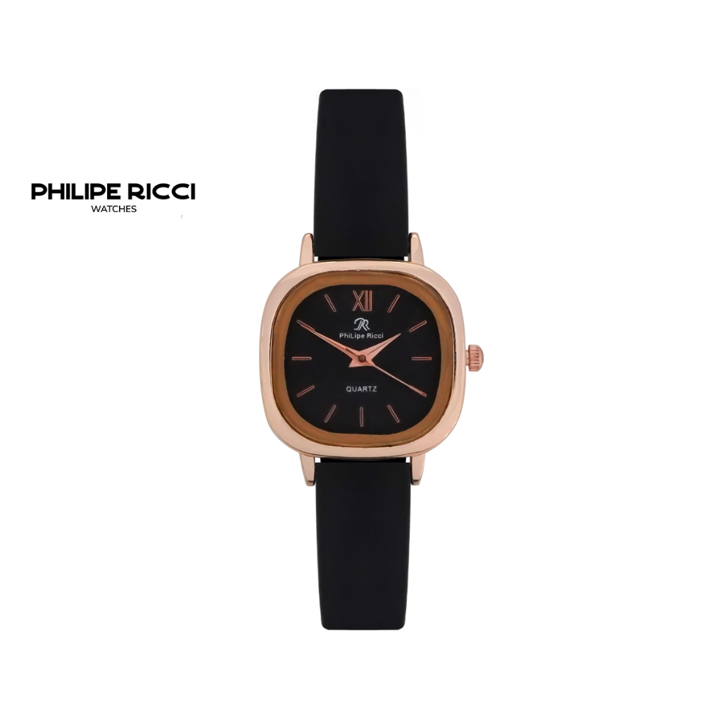 Jam Tangan Wanita PhiLipe Ricci – Desain Korea Minimalis, Kotak Kecil Kulit Hitam