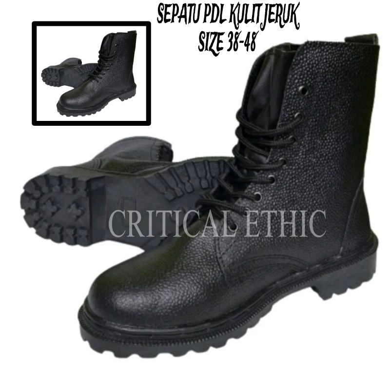 SEPATU PDL KULIT JERUK HITAM SEPATU PDL LINMAS HANSIP SECURITY POLRI TNI TERBAIK