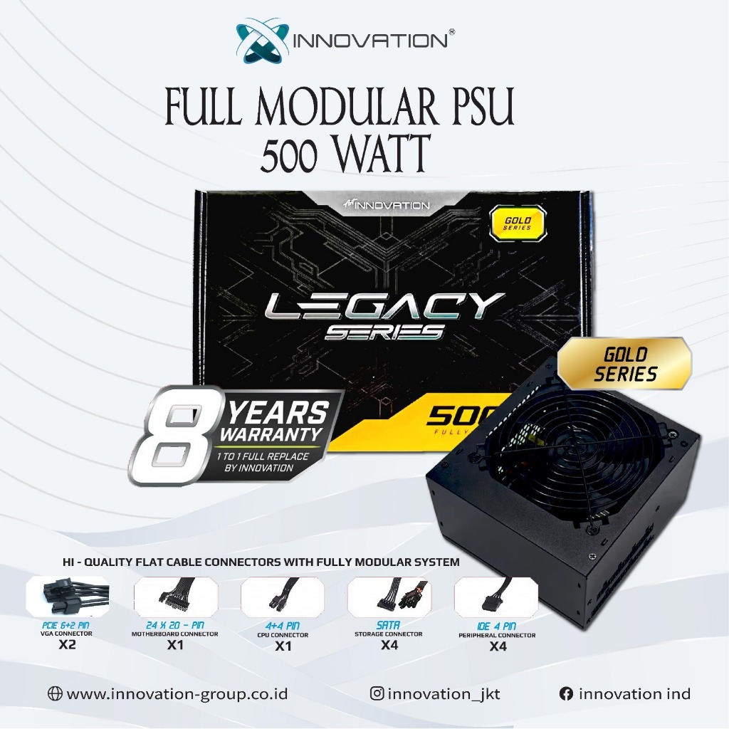 Power Supply Innovation 500W 80+ Gold (Garansi 8tahuh Ganti baru) PSU 500Watt