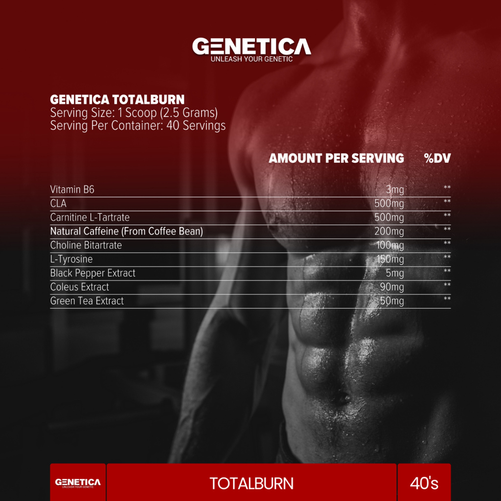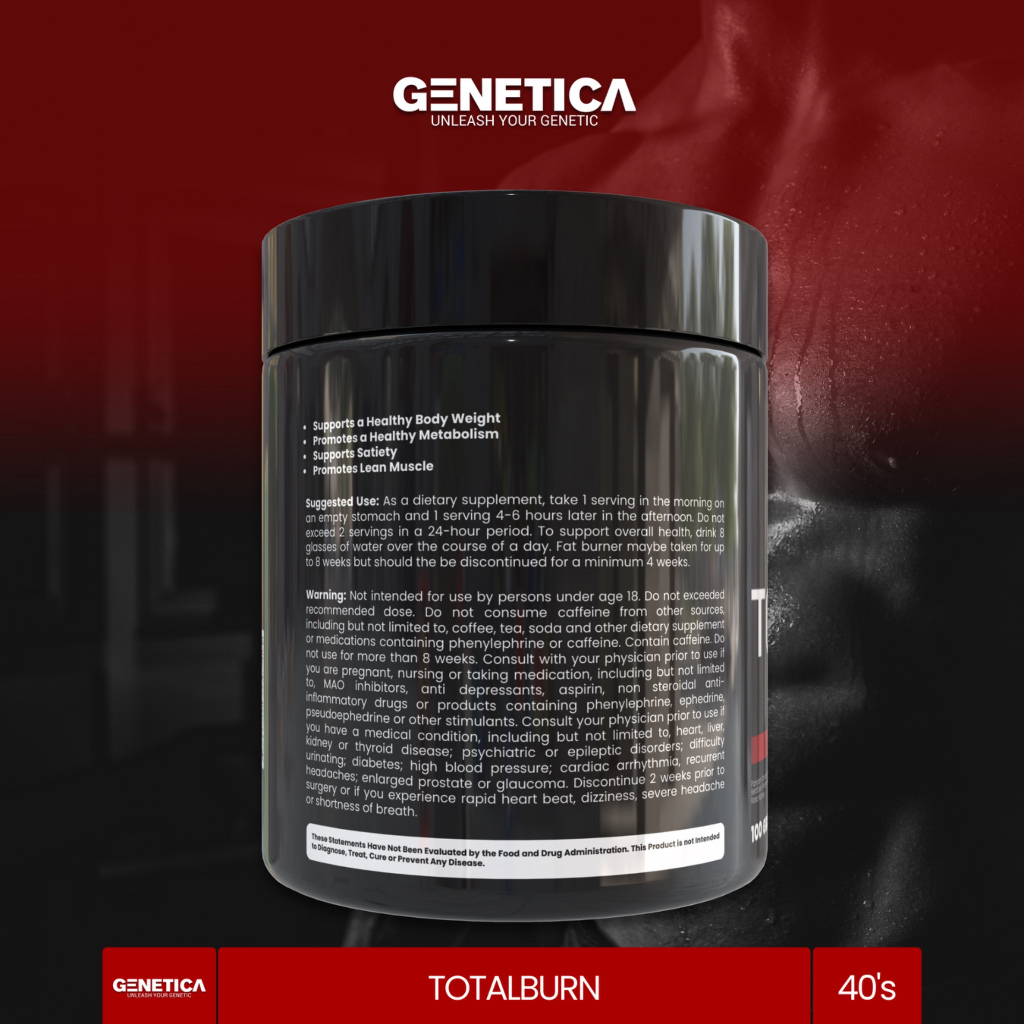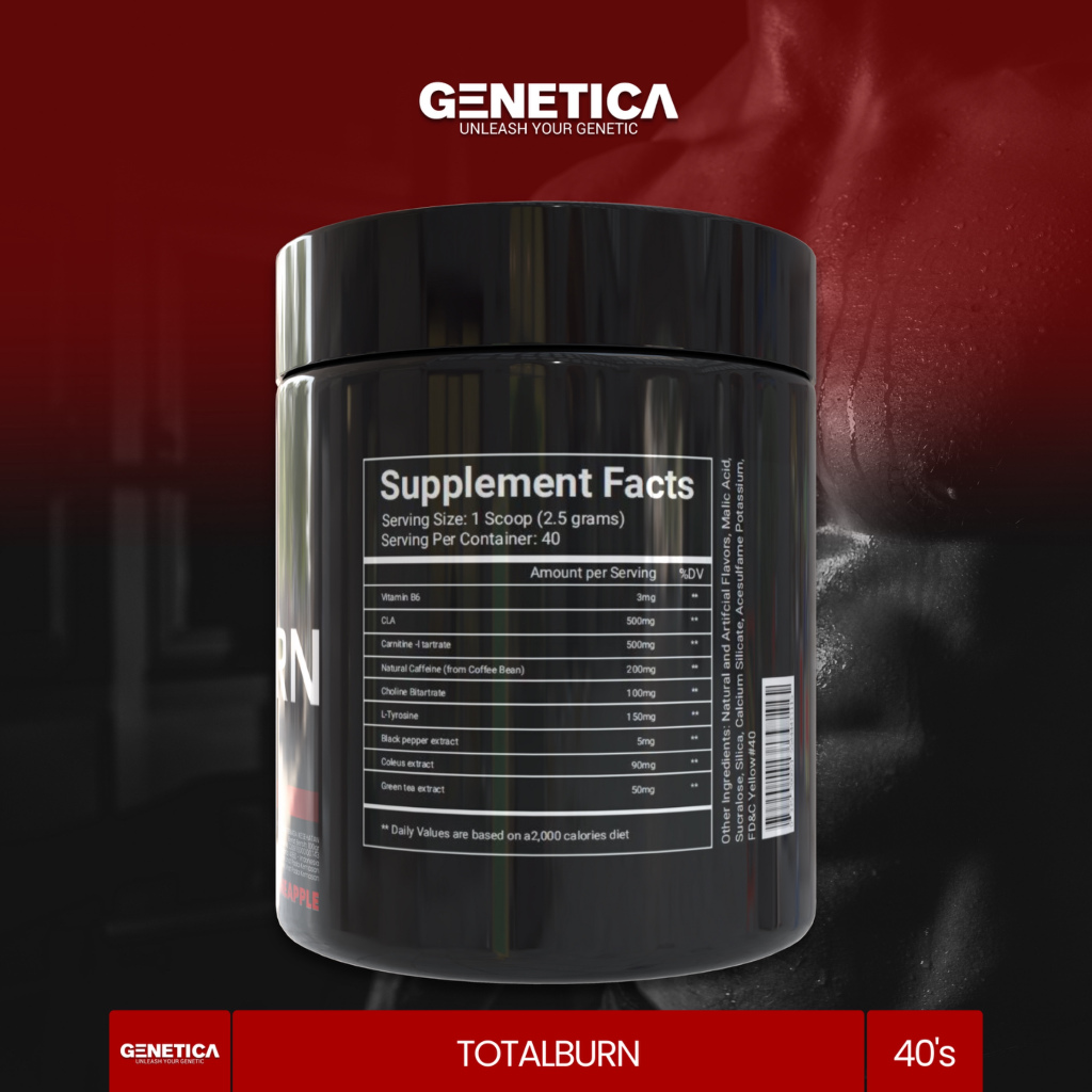 Genetica Total Burn Fat Burner 100 Gram CLA L Carnitine Bakar Habis Lemak Bandel, Bye Bye Gemuk