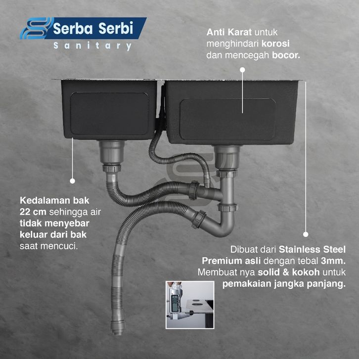 Tempat Cuci Piring / Wastafel Cuci Piring Stainless / Wastafel Cuci Piring / Double Bowl / Size 8245
