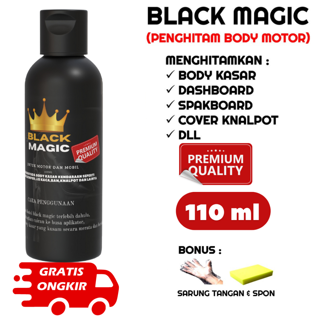 BLACK MAGIC 110ML/PENGHITAM BODY MOTOR/PENGHITAM DASBOARD /parfum helm/pennghitam ban dan kater trim restorer