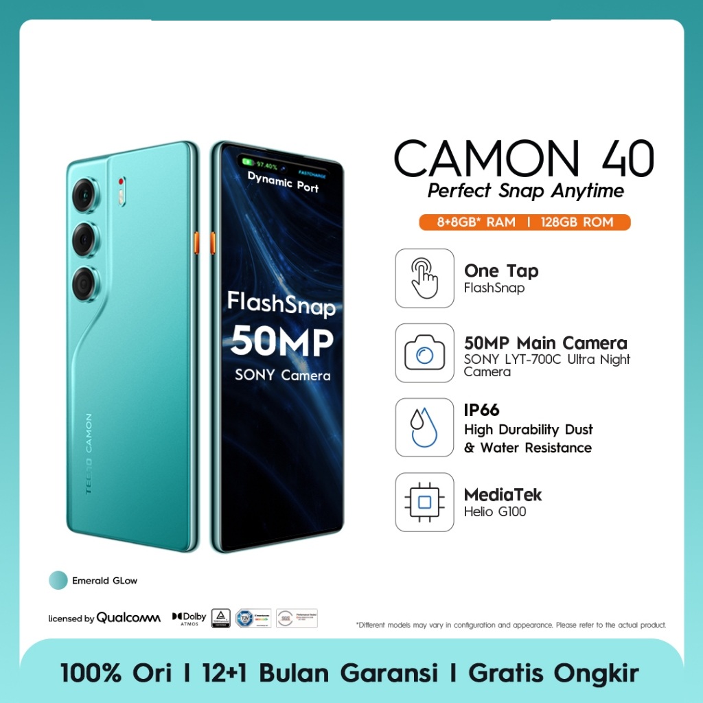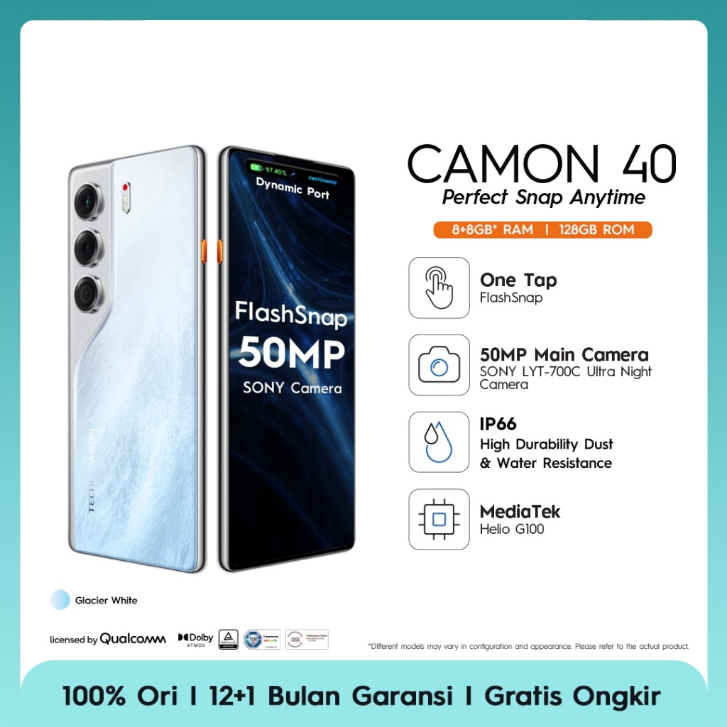tecno camon 40 8+8GB 128 GB, 50MP Sony + 8MP Ultra Wide Camera, 32MP Front Camera, 120hz AM