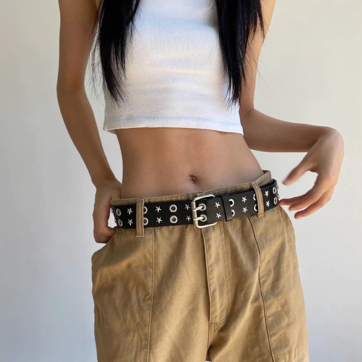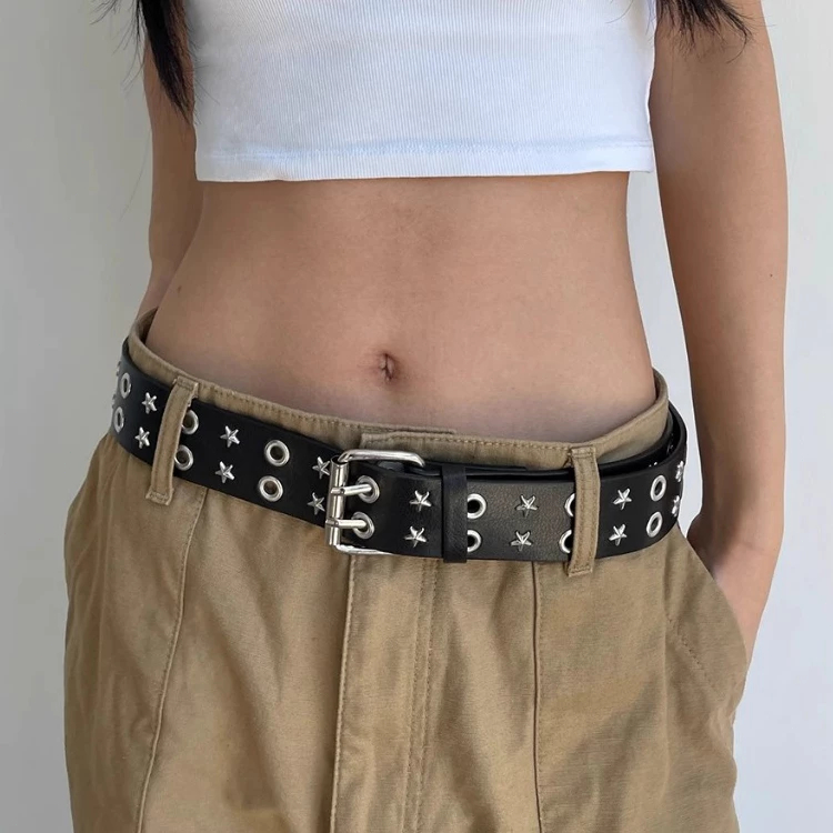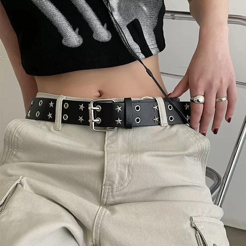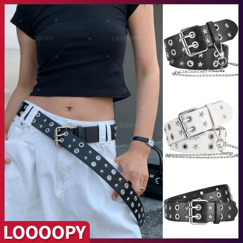 LOOOOPY Ikat Pinggang Wanita Fashion Import Korea Style Ikat Pinggang Celana Kulit PU Uniseks Sabuk Gesper Kulit Bintang