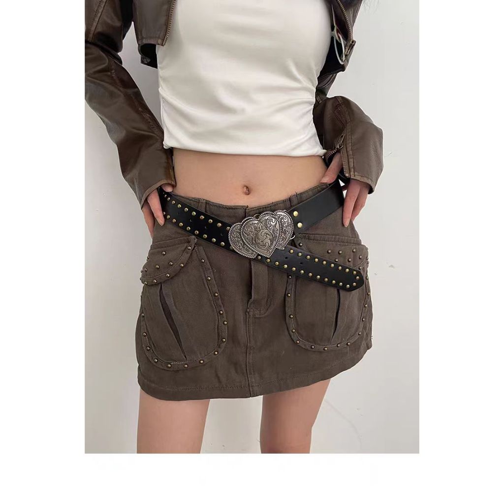 BGS- 471 Ikat Pinggang Wanita / Belt Casual Kulit Pu Model Love / Hati Gaya Letro Fashionable