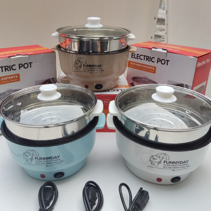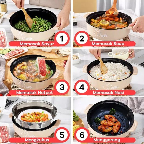 TERLARIS Panci Listrik Multifungsi Free kukusan 1TOMBOL/ Steamer Stainless Lapis Keramik Teflon RANDOM MERK