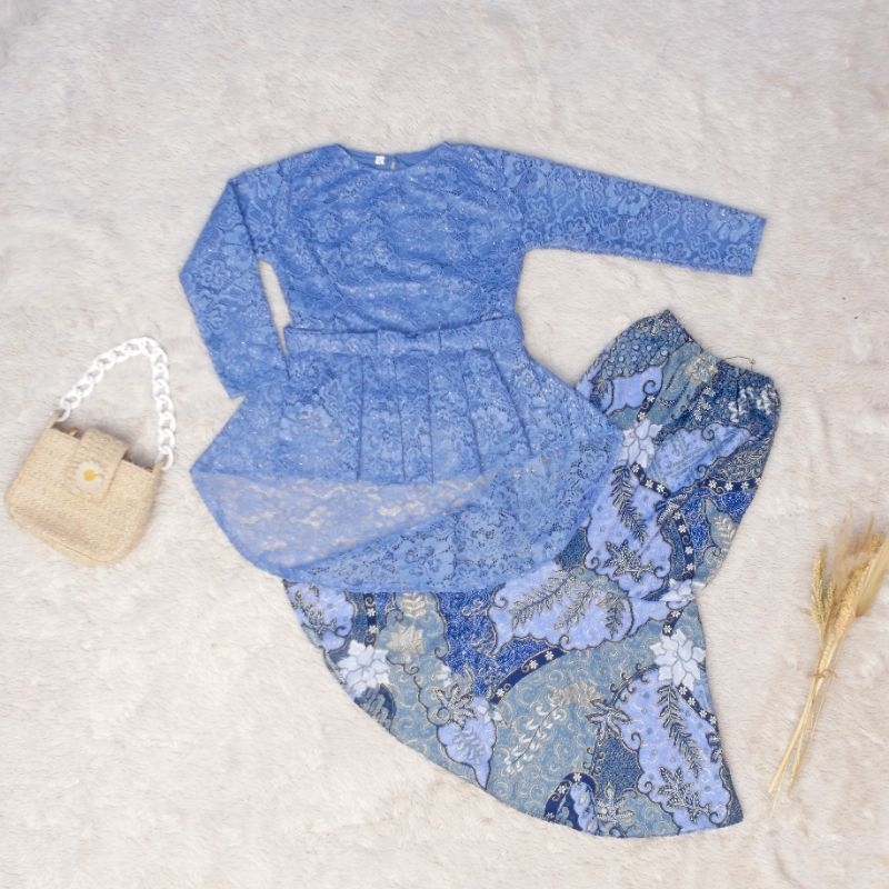 KEBAYA ANAK PEREMPUAN PREMIUM MODERN WARNA DENIM ROK DUYUNG USIA 4 12 TAHUN