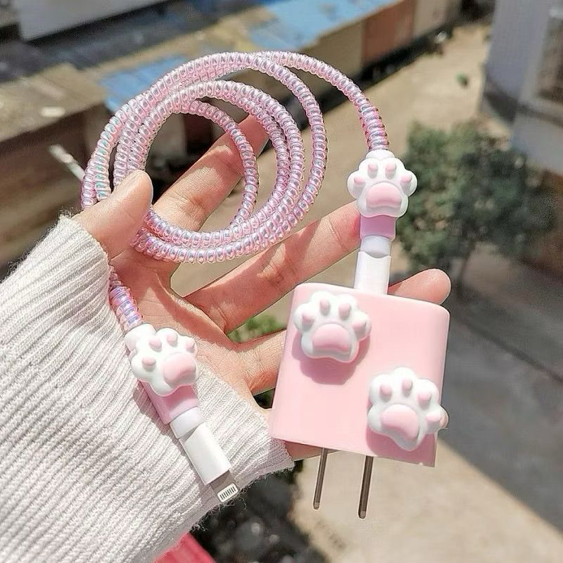 1 SET 5 PCS CABLE & CHARGER Pelindung Charger Iphone 20w Set 5 Item Paket Cover Pelindung Kabel & Kepala Charger Untuk