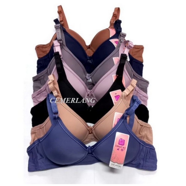 BH Bra Wanita Polos LINGCAO Asli | Busa Tanpa kawat Cup A Kait 2 - Cup B Kait 3 | Size 34 36 38 40 42