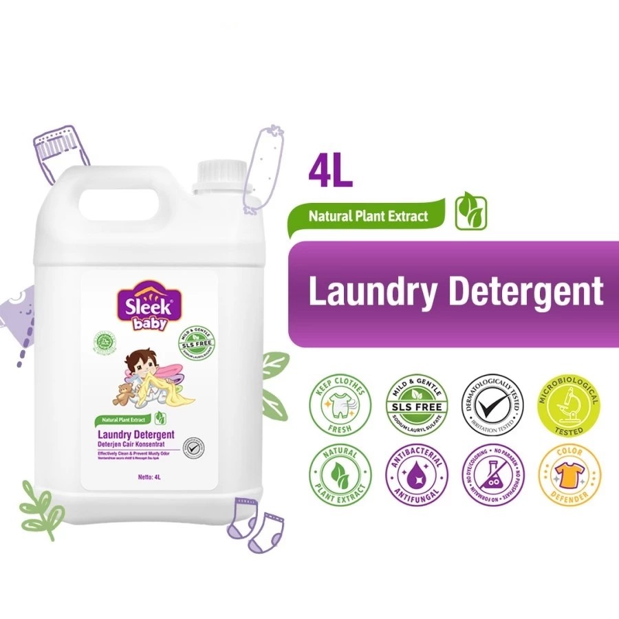 SLEEK BABY LAUNDRY DETERGENT PEMBERSIH PAKAIAN / SABUN CUCI BAJU 4LITER