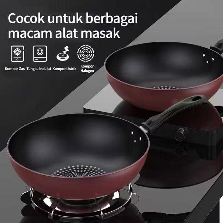 TERLARIS Wajan Penggorengan Anti Lengket Ukuran 32Cm Wajan Gagang Jumbo Diamond Wok Pan ehacg