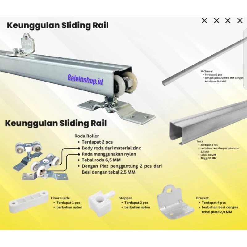 Rel Pintu Geser/Sleding Rail 1 Set Komplit
