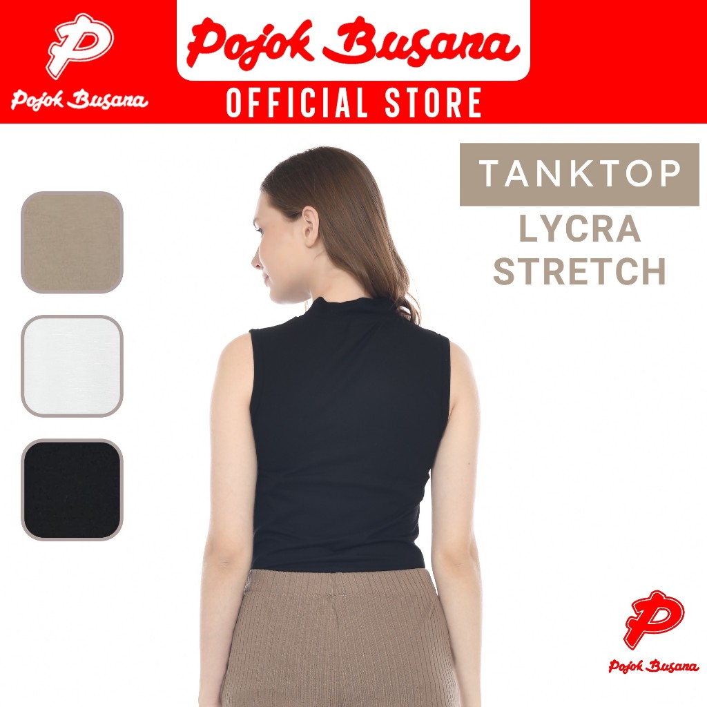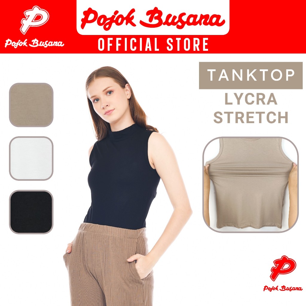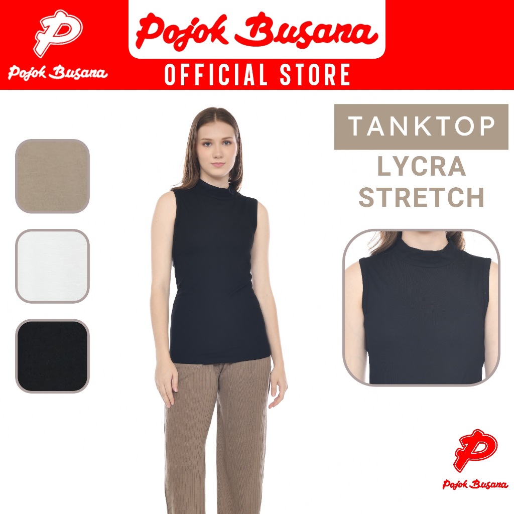 Pojok Busana TankTop TurtleNeck LYCRA Stretch Ladies - Dalaman Tank Top Singlet Wanita Hitam Putih