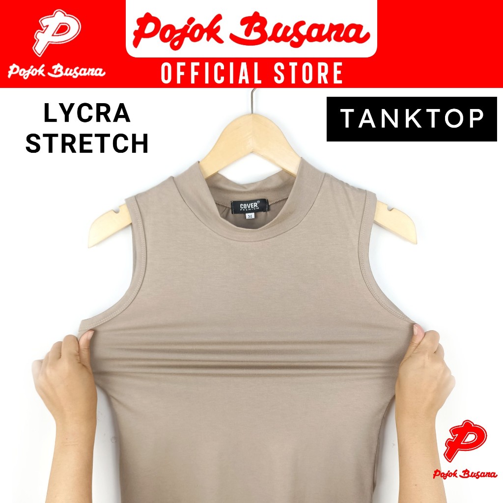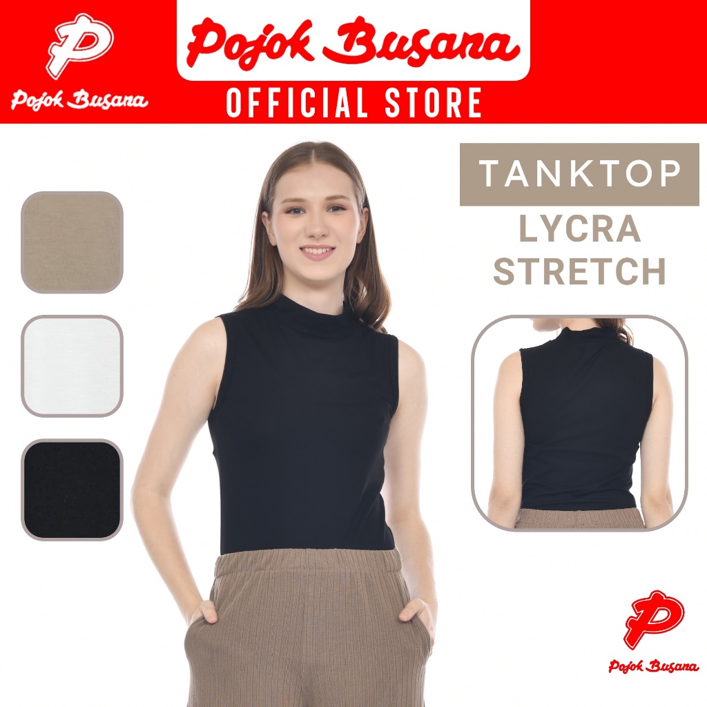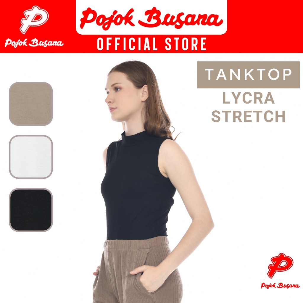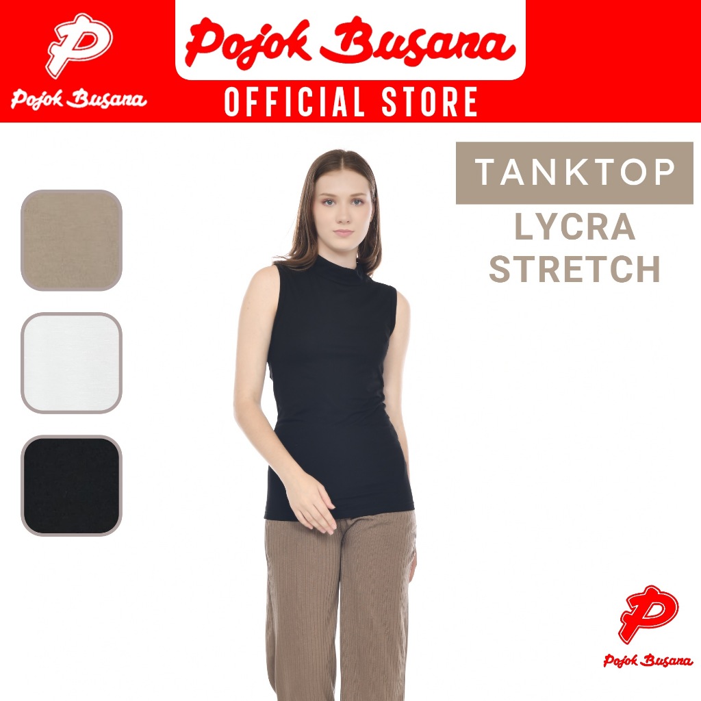 Pojok Busana TankTop TurtleNeck LYCRA Stretch Ladies - Dalaman Tank Top Singlet Wanita Hitam Putih