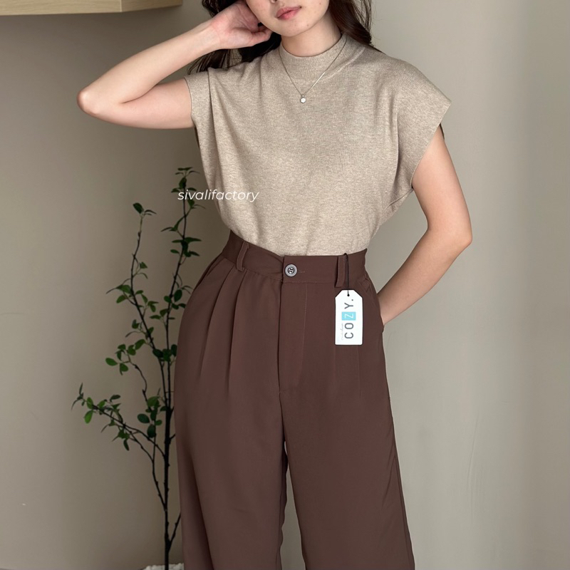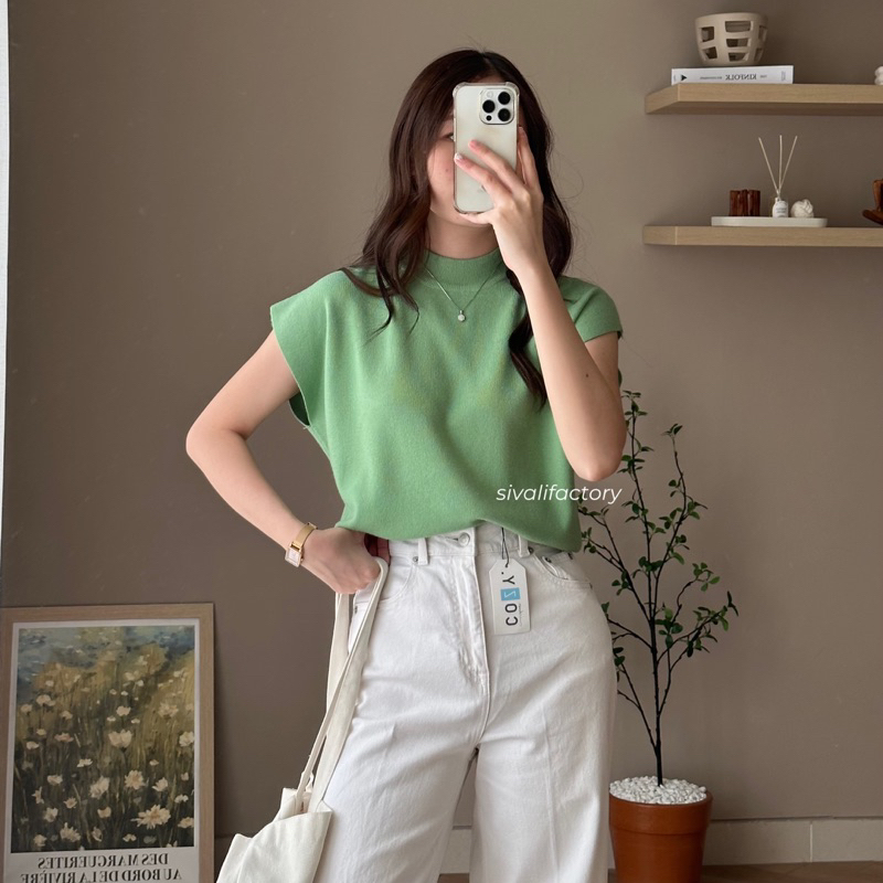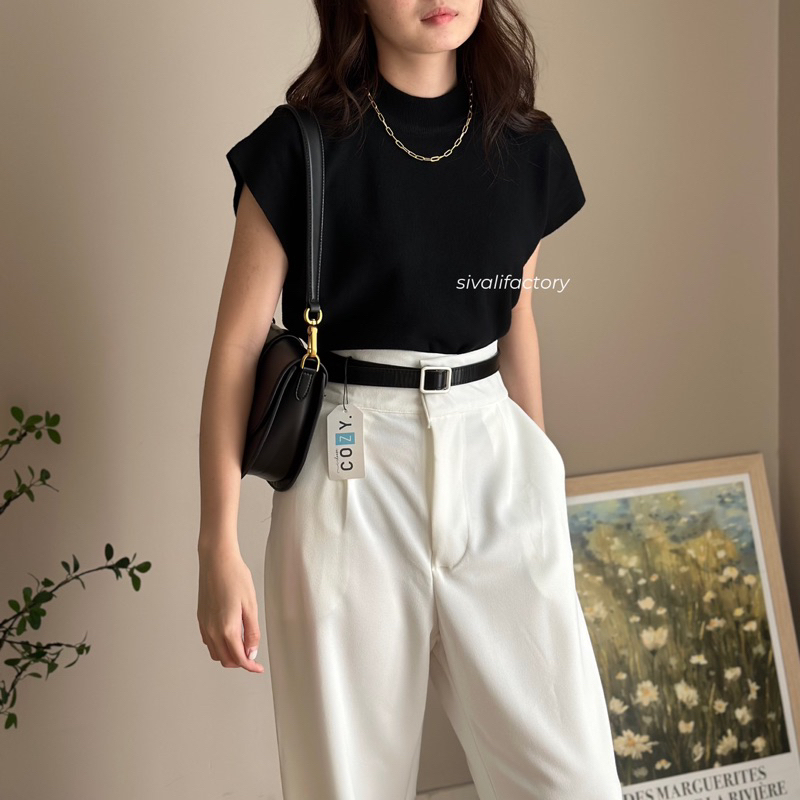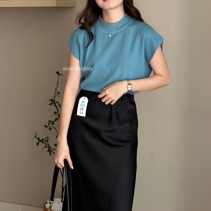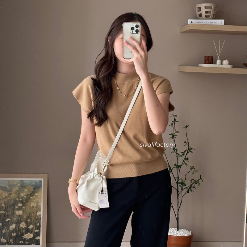 SIVALI Eunji Knit Top - Baju Wanita Vest Turtleneck Rajut Tanpa Lengan Import | Inner Hijab - Atasan Wanita