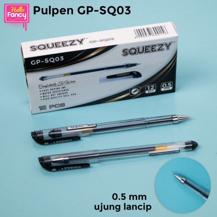 Gel Pen Pulpen Pena Squeezy Gel 0.5 Mm 1 Pak Isi 12 Pcs