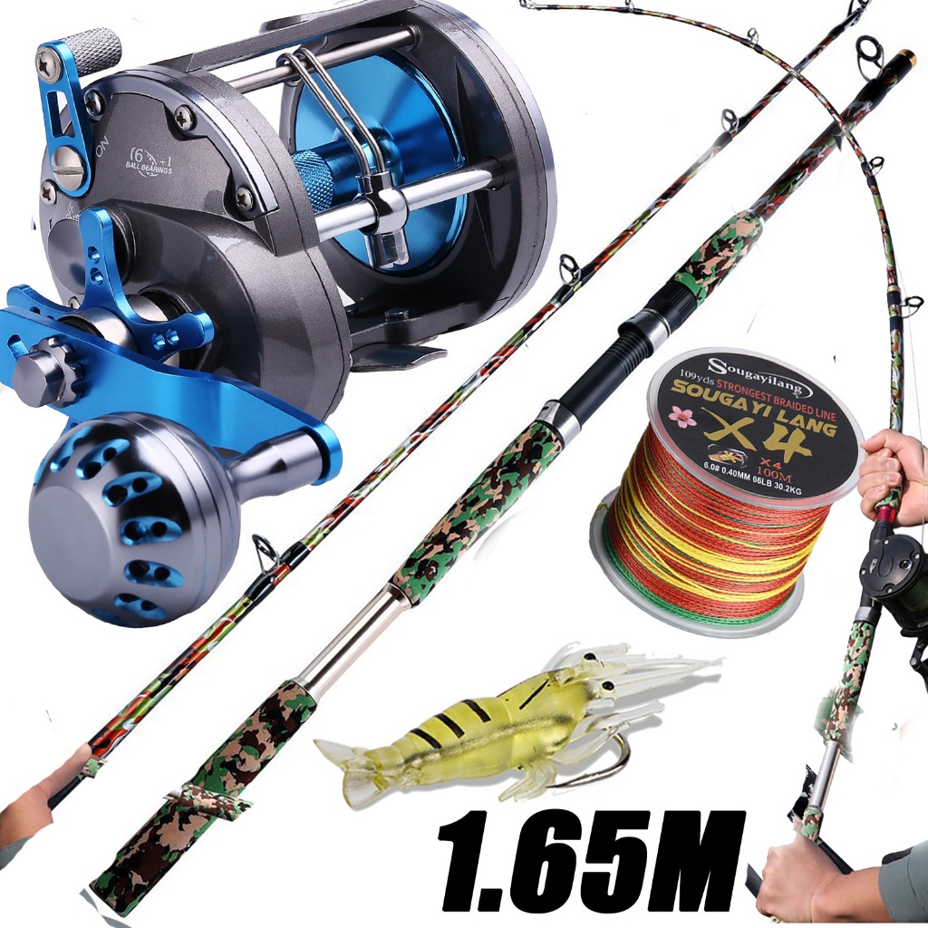 SOUGAYILANG CARP SPINNING FISHING ROD 1.65M 2 BAGIAN BAHAN KARBON POLE DRUM BAITCASTING FISHING REEL 5.1: 1 GEAR RATIO BAHAN ALUMINIUM GENDANG WHEEL JORAN SET PERALATAN PANCING
