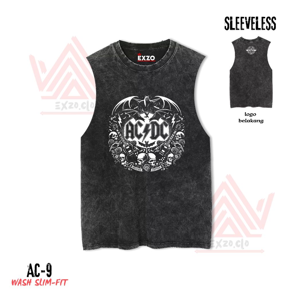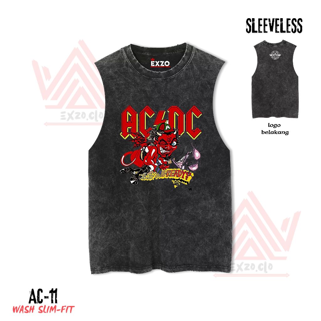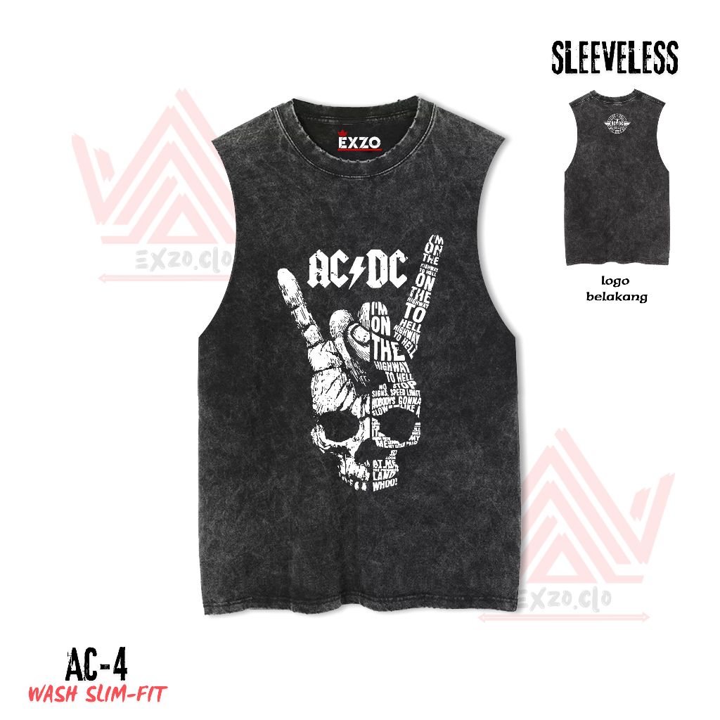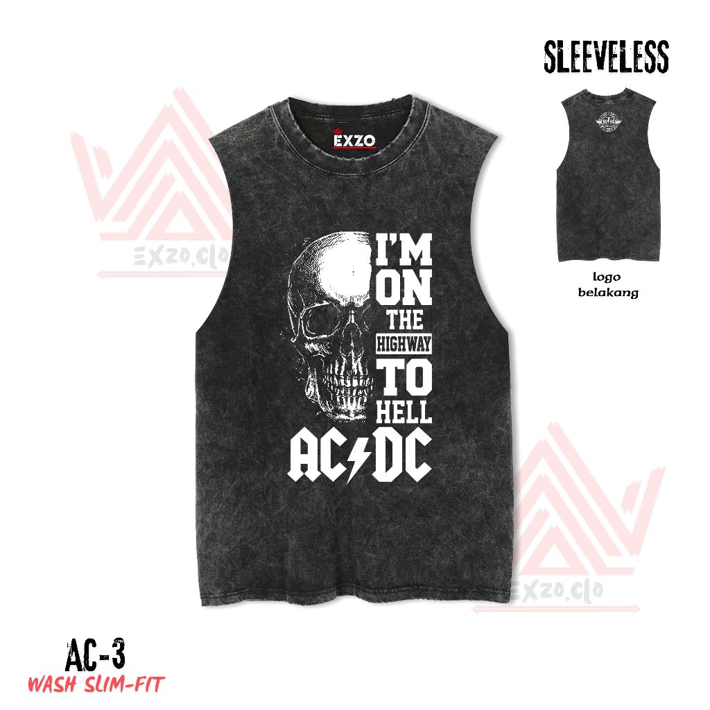 EXZO kaos ACDC sleeveless tshirt Singlet Pria muscle tees kaos ACDC