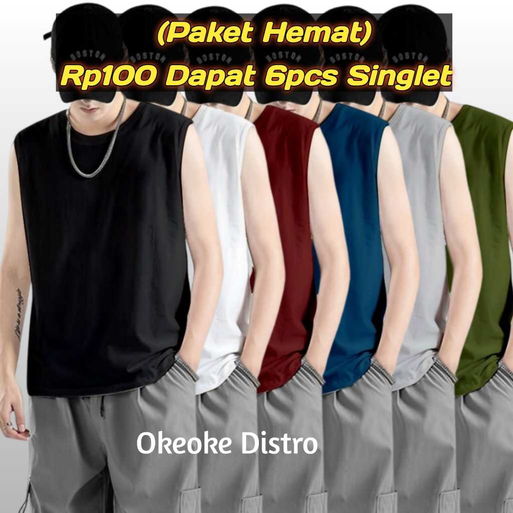 PAKET HEMAT Kaos Singlet Paketan 6 pcs 100rbu Singlet Santai Gym