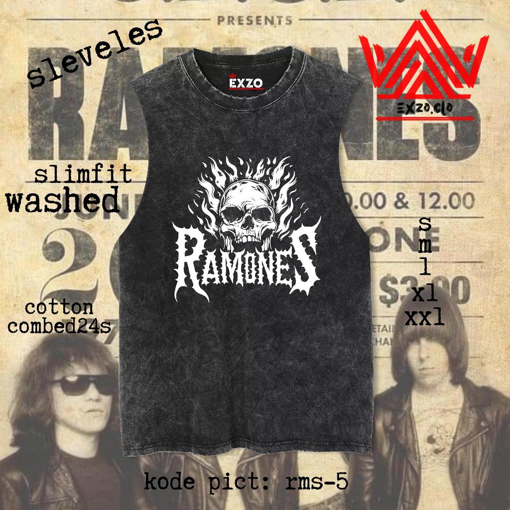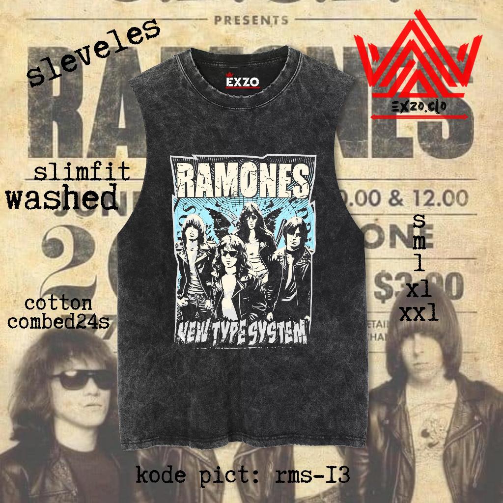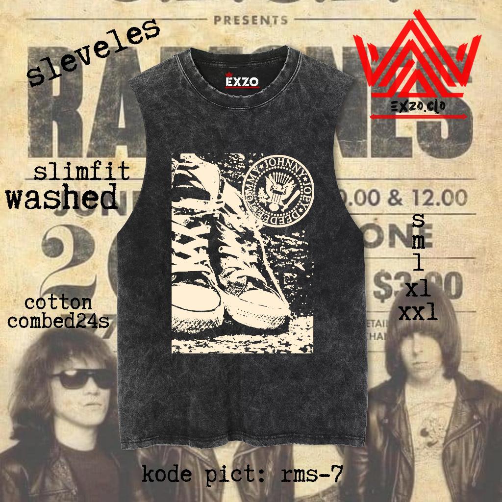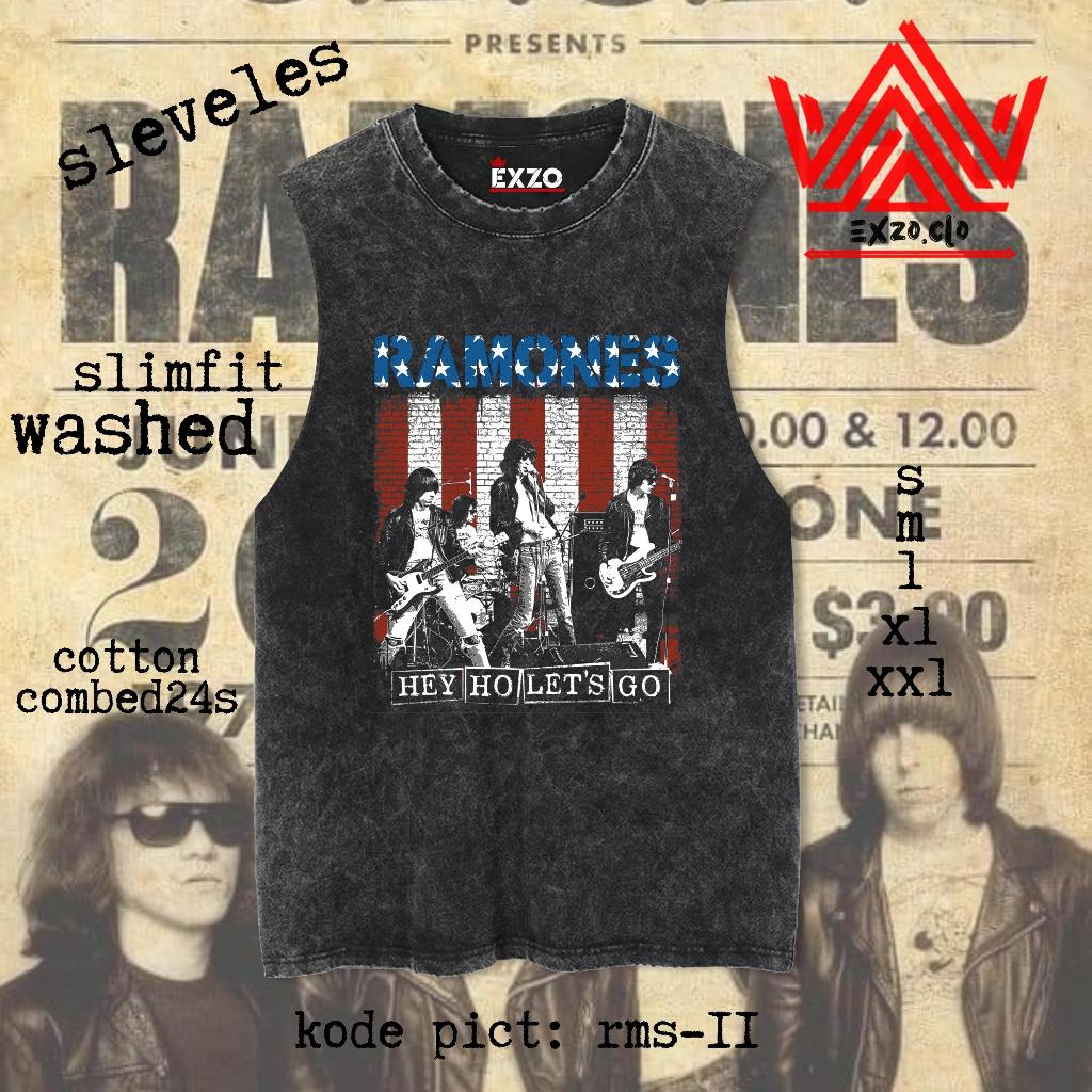 EXZO singlet RAMONES SLEEVLES cotton combed24s BAJU BERMOTIF LEKBONG SINGLET SLEEVLES T-SHIRT