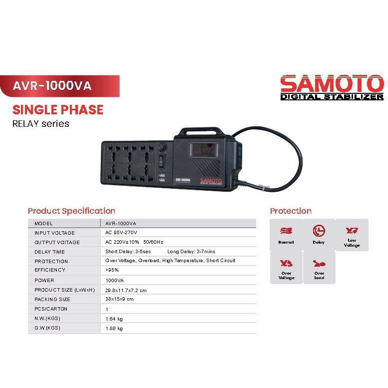 Stabilizer SAMOTO AVR1000 1000VA 800W Socket GERMANY/EUROPE Portable Relay Digital