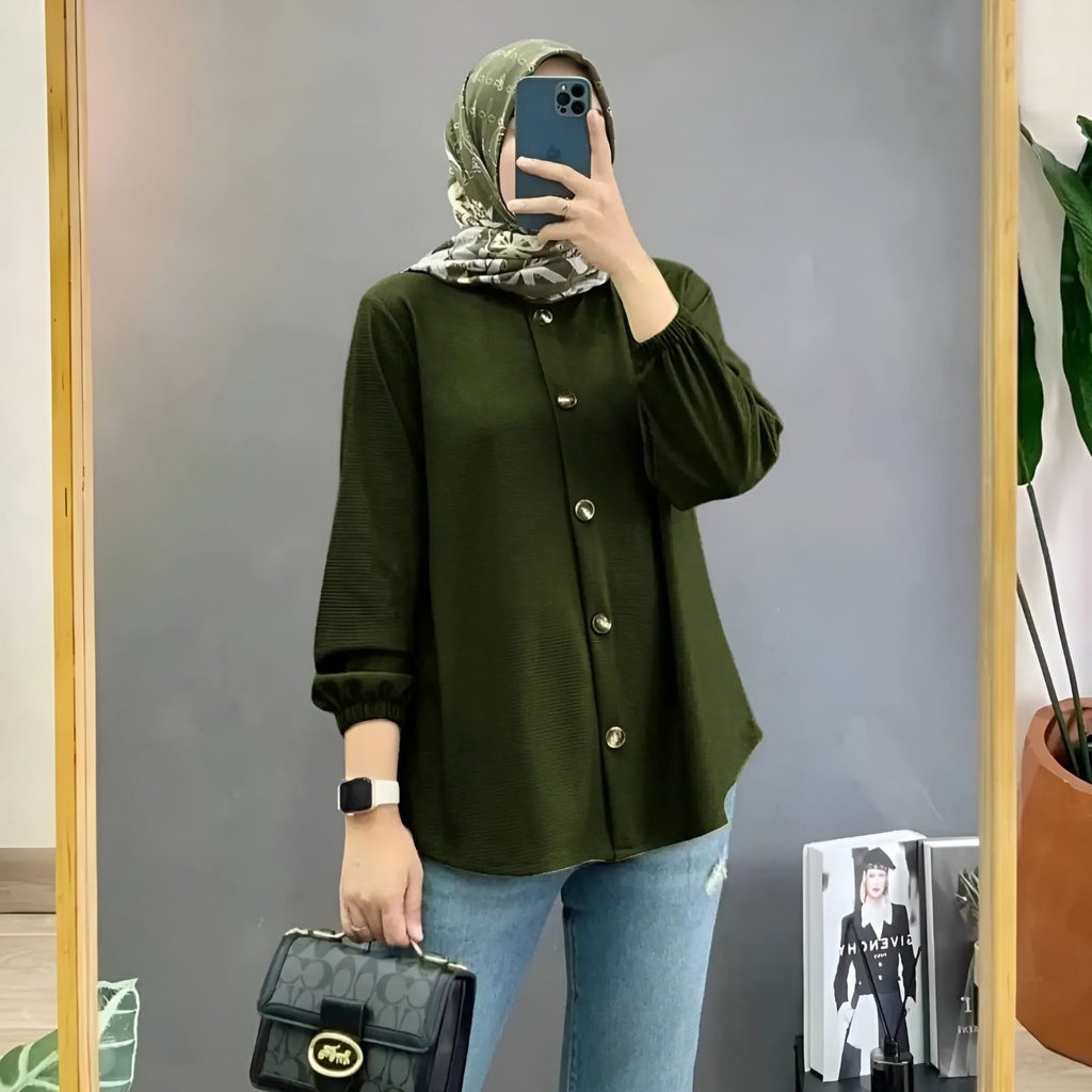Vallina Outfit - Devanca Shirt Atasan Kemeja Blouse Kantoran Wanita Muslim Premium Airflow Crinkle Fit XL