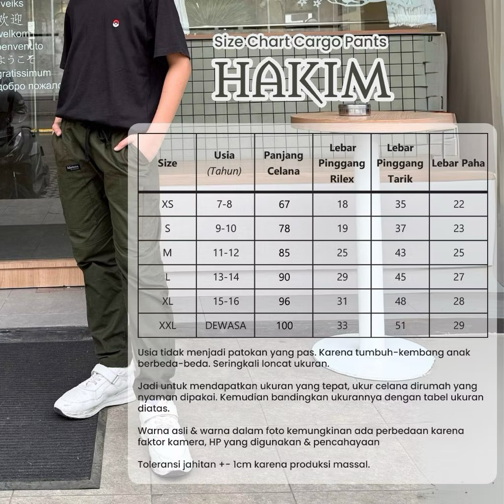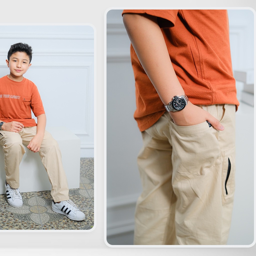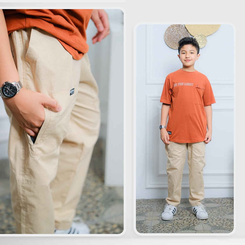 CELANA PANJANG CARGO ANAK LAKI LAKI DAN REMAJA PREMIUM LONG CARGO PANTS HAKIM CREAM BILHIKMA