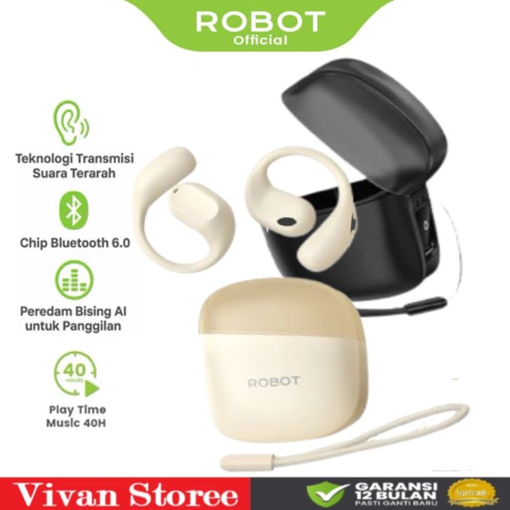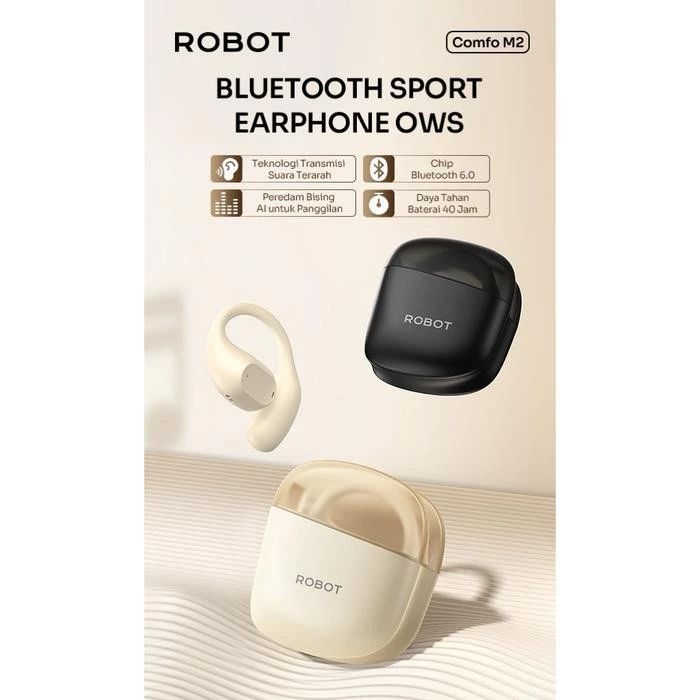 ROBOT TWS COMFO M2 OWS HEADSET BLUETOOTH 6.0 EARPHONE SPORT ORIGINAL RESMI BATERAI 40 JAM