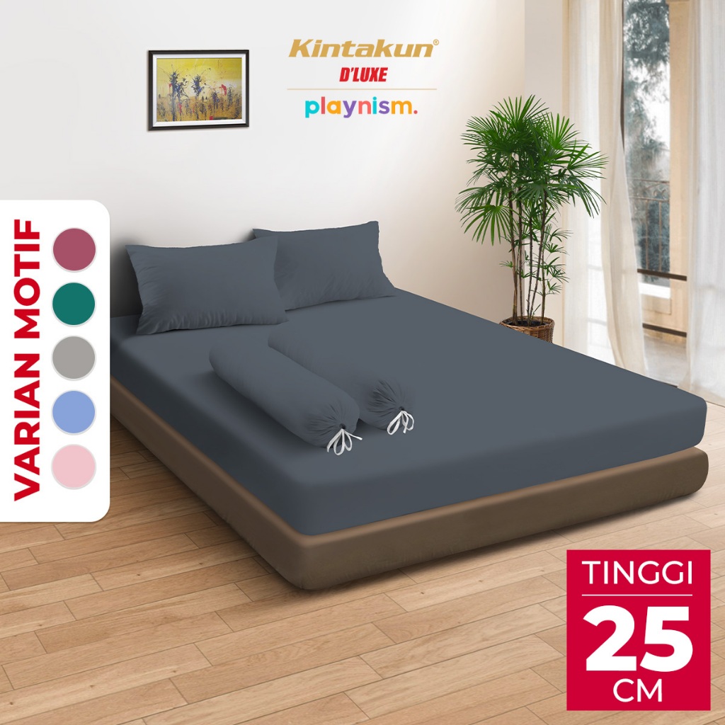 Kintakun Sprei Fitted 180 x 200 DLUXE Aesthetic Polos Microtex Tinggi 25 cm B2 Multivarian