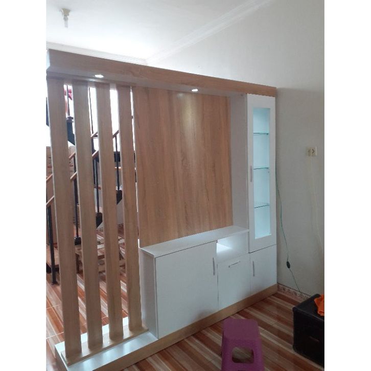 Lemari Partisi Penyekat Ruangan + Rak TV Modern | Multifungsi & Minimalis Elegan