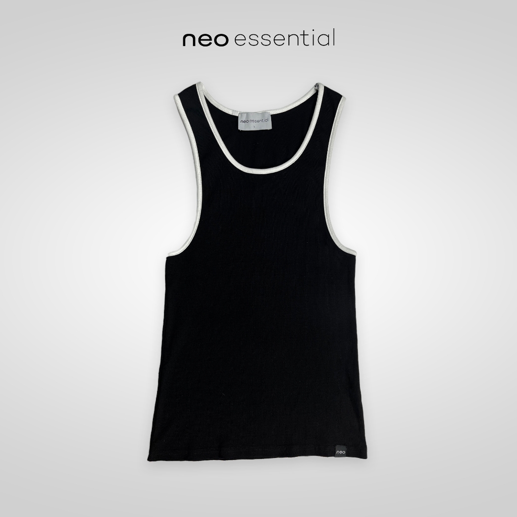 Neo Essential Kaos Singlet Pria Gym | Ribbed Tank Top Olahraga Warna Hitam