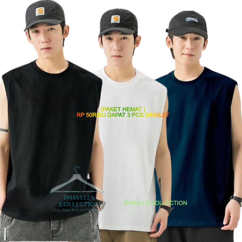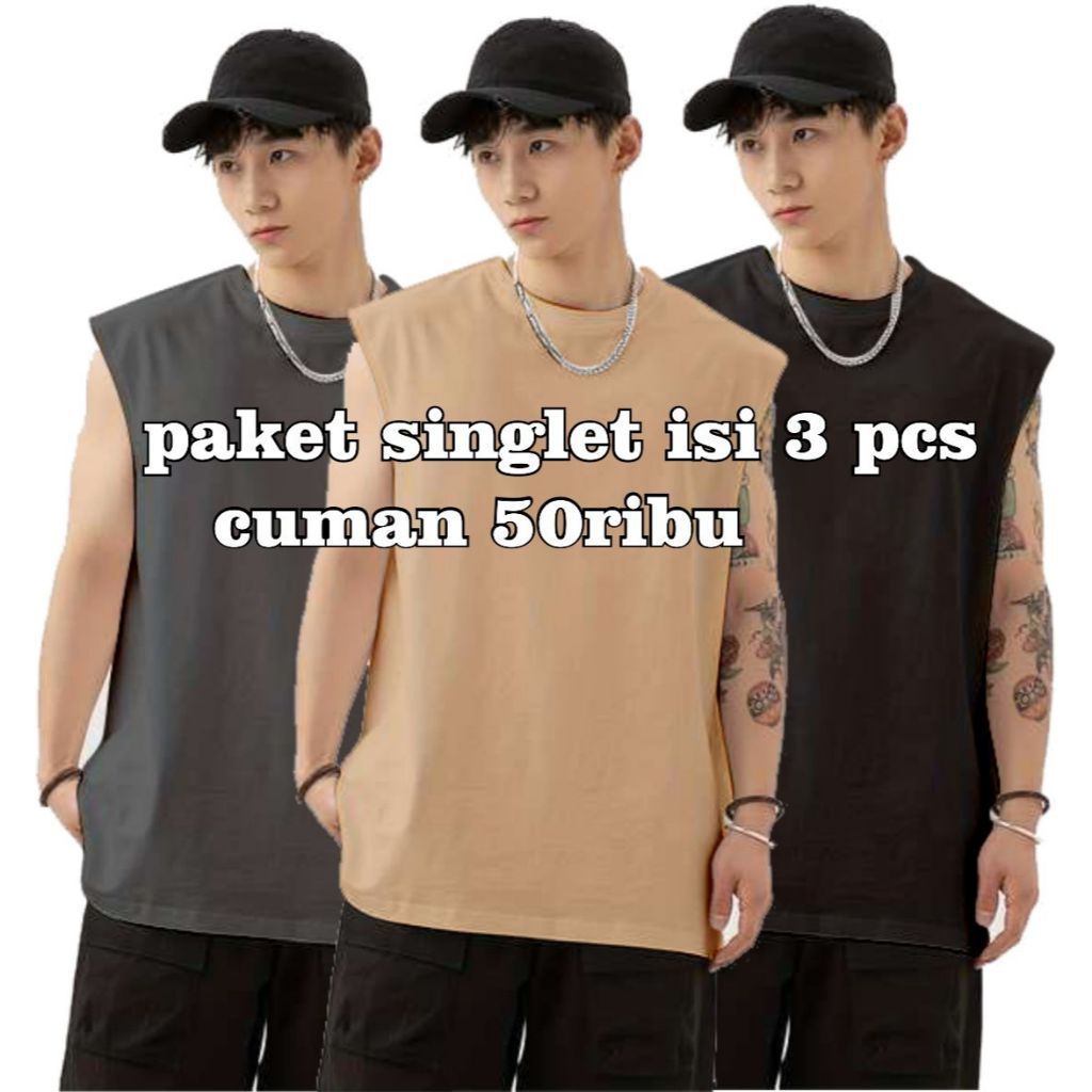 PAKET HEMAT Baju Singlet Pria Dewasa Paketan 3 pcs 50ribu Singlet Santai Gym / Kaos Lekbong Pria Santai / Baju Singlet C