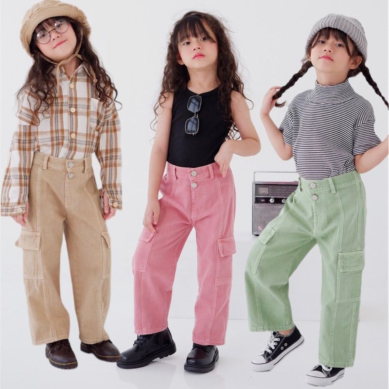 CARGO PANTS ANAK CELANA JEANS KULOT CARGO ANAK PEREMPUAN 1-7