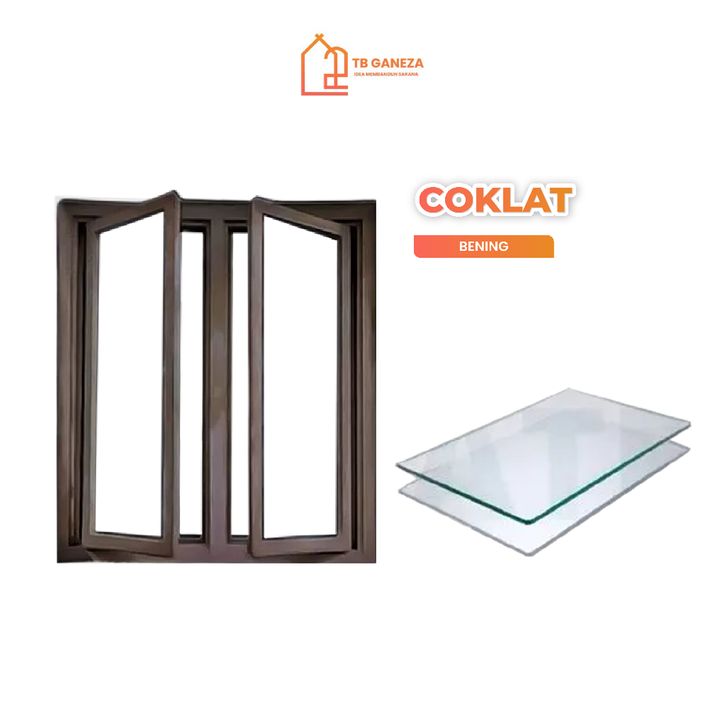 (T150XL100CM GANDENG SWING POLOS) SET JENDELA ALUMINIUM MODERN LENGKAP TINGGAL PASANG JUNGKIT SLIDING SWING