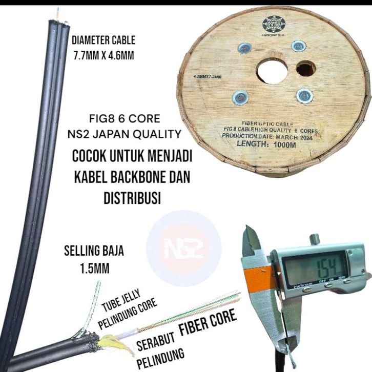 kabel fo fig8 6 core jelly tube 1km NS2 high Quality fiber optic dropcore