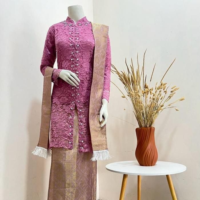 SET KEBAYA KOMPLIT MEWAH / SET KEBAYA PAYET/ SETELAN KEBAYA SONGKET - kbya+songket - Crem S : 89 cm