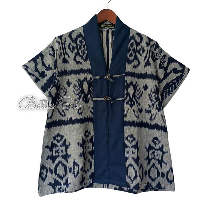abu mix hitam, biru lawasan, motif rumput, tenun