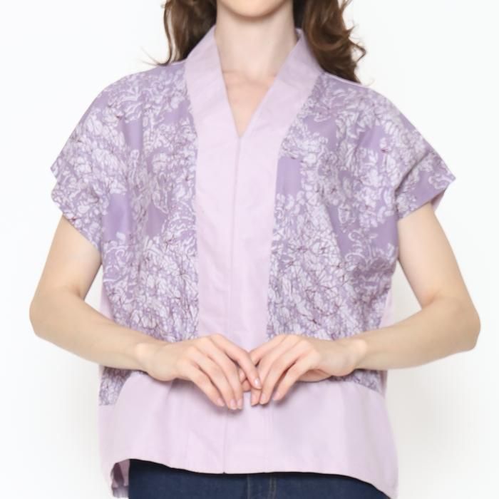 Blouse Batik Wanita - Bhatara Batik Rosita - Lengan Pendek - Purple 5858 L/XL
