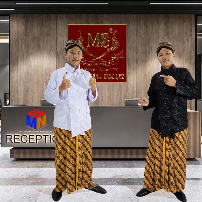 BAJU SURJAN HITAM & PUTIH KLASIK EMBOS [ Busana Adat Khas Jawa ] - Setelan Hitam S
