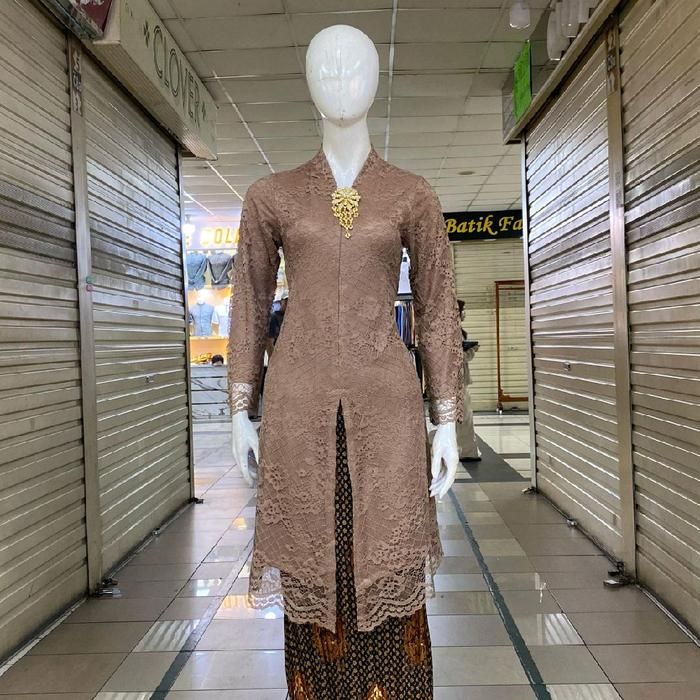 Atasan Kebaya Kerah V/ Atasan Kebaya Wisuda Mewah Ukuran M-3XL Brokat Tunik - Hitam M