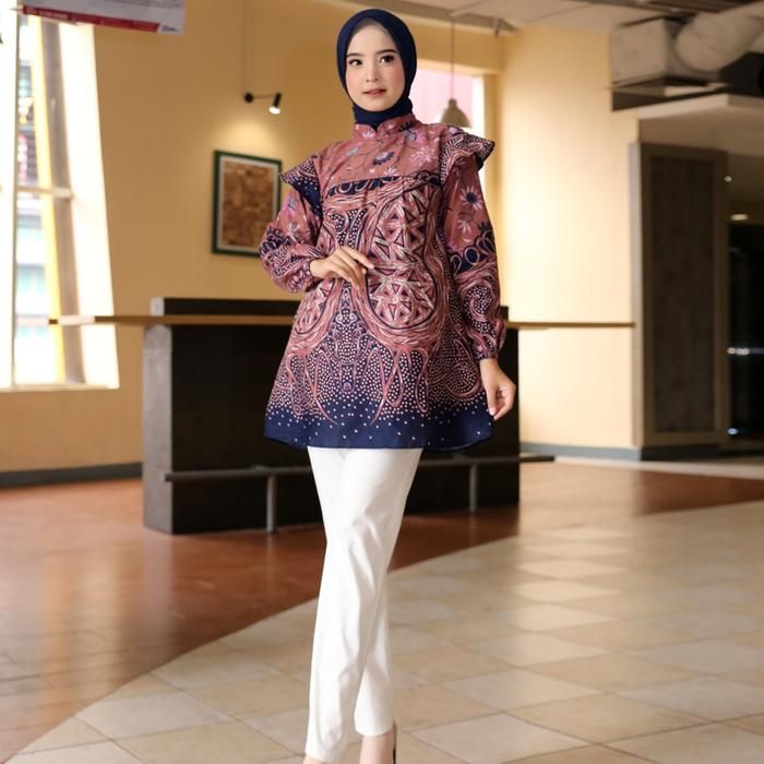 Atasan batik wanita modern blouse batik kantoran kekinian yolanda ping - Yolanda Ping S