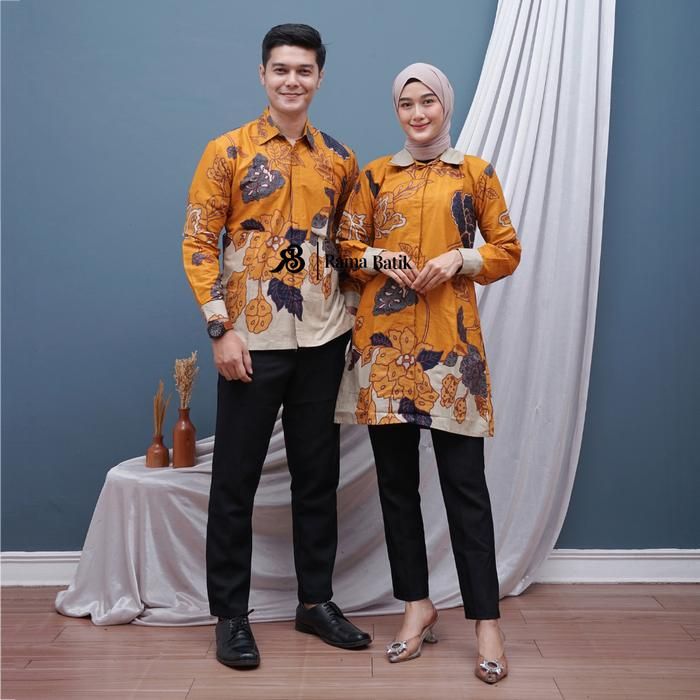 RAMABATIK - Batik Couple Terbaru Baju Batik Couple Modern Motif Mawar New - Tunik 1 M