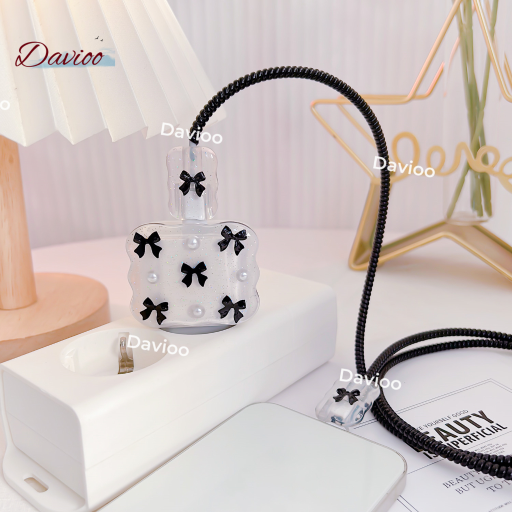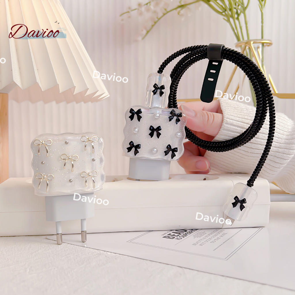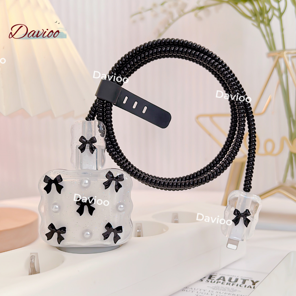 Davioo Pelindung Kabel Charger Iphone motif Kristal Kupu-Kupu Hitam Case Charger Iphone 18w&20w