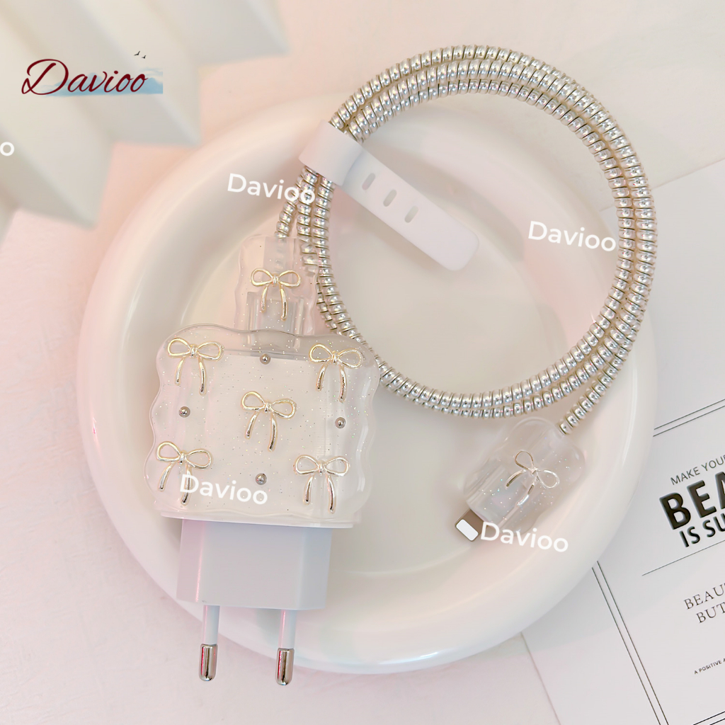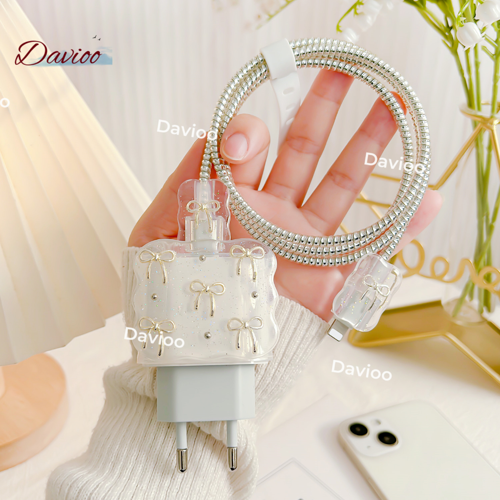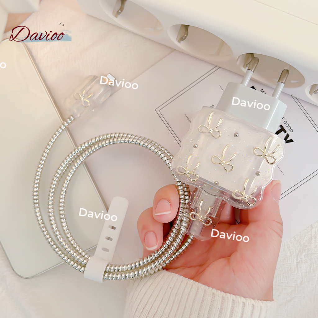 Davioo Pelindung Kabel Charger Iphone motif Kristal Kupu-Kupu Hitam Case Charger Iphone 18w&20w