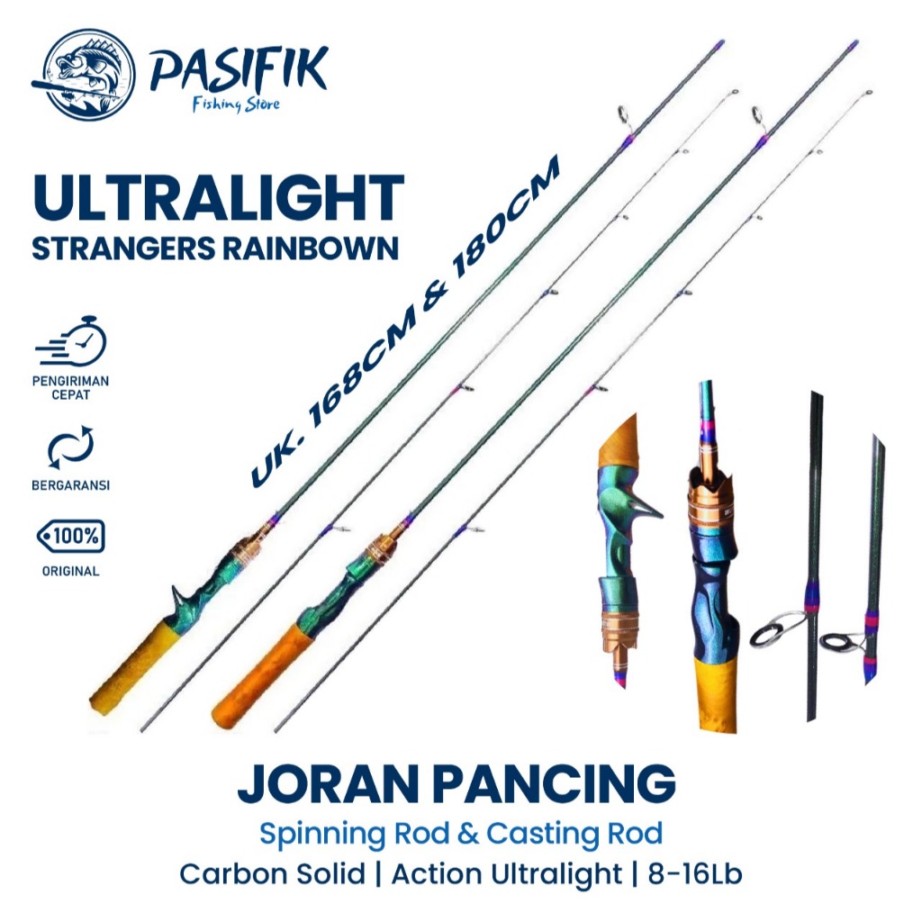 JORAN PANCING STRANGERS RAINBOWN UK 1.68M - 1.80M ACTION ULTRALIGHT FISHING SPINNING ROD & CASSTING ROD SUPER RINGAN TONGKAT MEMANCING BASS 8-17G JORAN SAMBUNG 2 BAGIAN LURE FISHING ROD SOLID